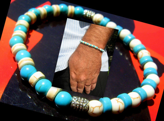 Men white howlite Turquoise Bracelet Healing stone, handmade bracelet men gift