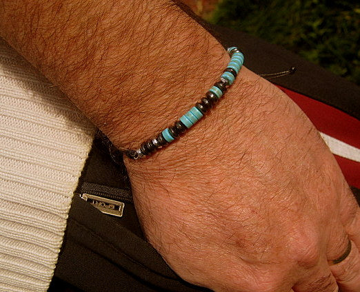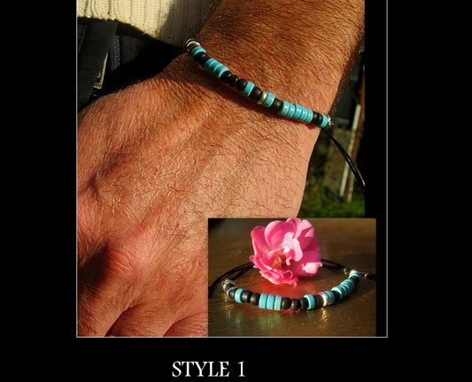 Men/women Bracelet, Hematite, Coco wood, Onyx & TURQUOISE, vegan CORD, Healing protection stone Men handmade slim bracelet Men gift