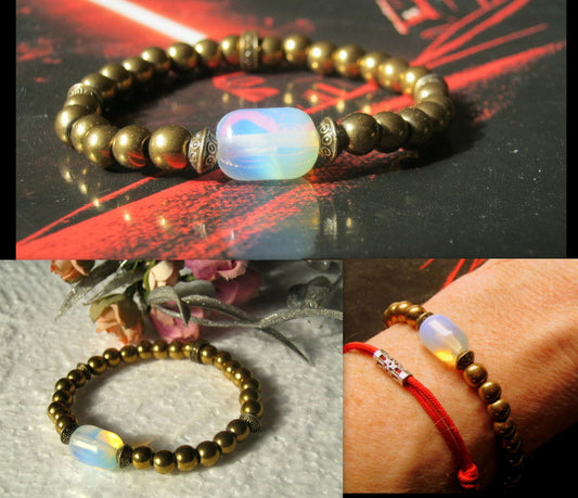 OPAL stone black Hematite Bracelet Moonstone, Healing stone, Handmade bracelet men women couple gift