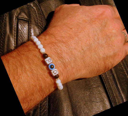 Men/ Woman Evil Eye stone Personalized BRACELET for Protection White shell Onyx Turquoise Lava hematite Handmade bracelet men gift