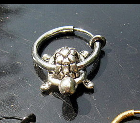 Men TURTLE Earring Hoop or Clip on non piercing earring, Dangle Handmade earring women men gift