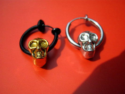 Men smiling SKULL punk Earring Hoop or Clip on non piercing earring, Dangle Handmade earring women men gift