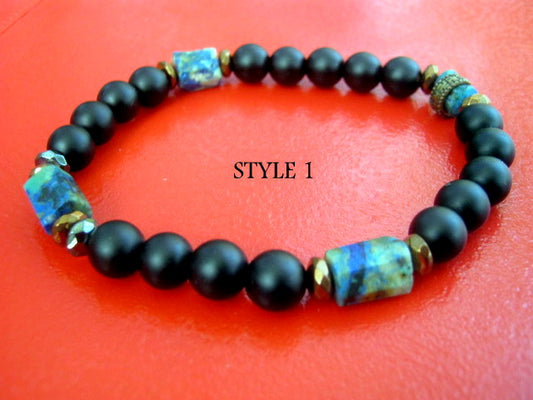 Men Azurite LAPIS LAZULI stone Bracelet Turquoise Black Onyx, Agate, Hematite Healing stone, Tribal handmade bracelet men gift