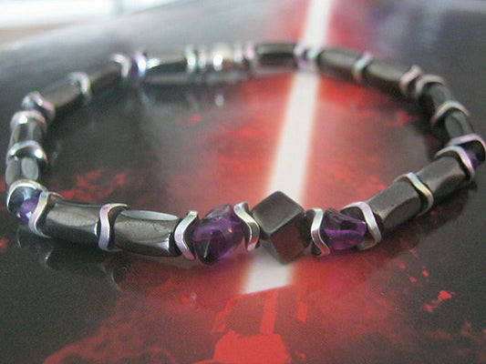 Men AMETHYST Hematite Tourmaline Cord Healing protection bracelet Men/ women/ couple gift, February stone, Handmade bracelet
