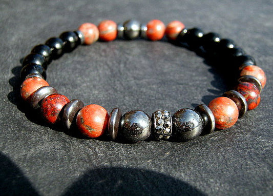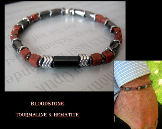 Men BRACELET Red JASPER& BLOODSTONE Tourmaline Hematite Onyx Prosperity protection Fertility Bracelet.Healing stone, handmade bracelet men gift
