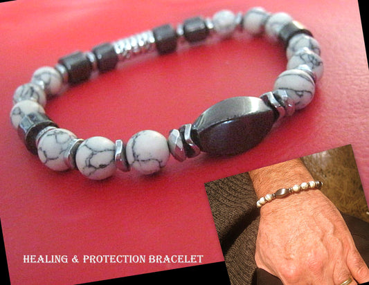 Men Bracelet HEMATITE, WHITE HOWLITE spiritual jewelry Mala Protection Bracelet Healing stone, handmade bracelet men gift
