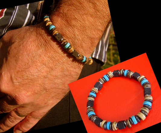 Men Bracelet TURQUOISE, Coconut Wood heishi Lava Hematite Protection stone, handmade bracelet men gift