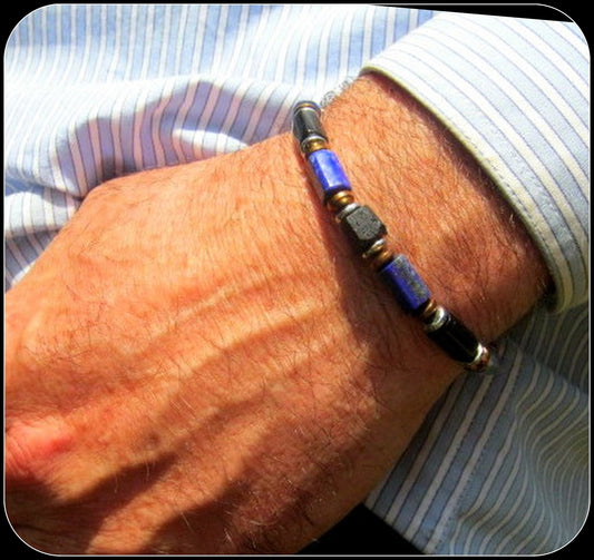 Men Bracelet LAPIS LAZULI Lava Tourmaline Turquoise Onyx Protection stone, handmade bracelet men gift