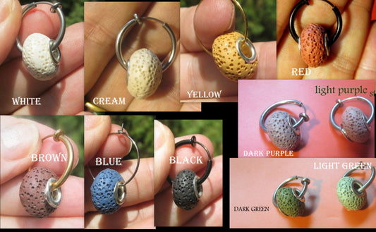 Men Earring donut LAVA stone, Dangle Hoop/ clip on black, Aromatherapy stone Handmade earring men women gift
