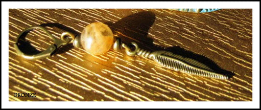 Men Earring Citrine stone-Full moon, Feather Dangle Hoop/ clip on bronze earring, Handmade earring women men gift