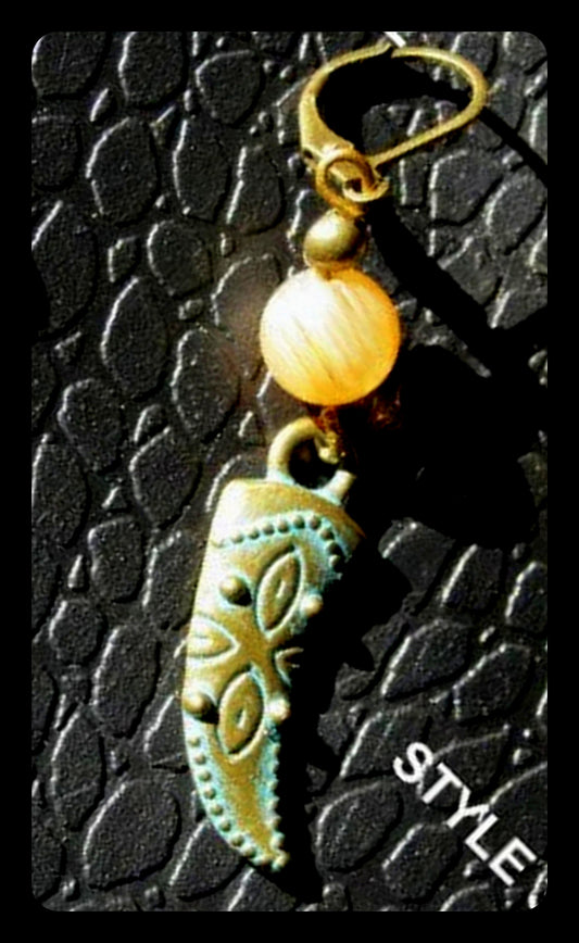 Men Earring Citrine stone-Full moon, Horn of abondance/ sword, Protection Dangle Hoop/ clip on bronze earring, Handmade earring women men gift