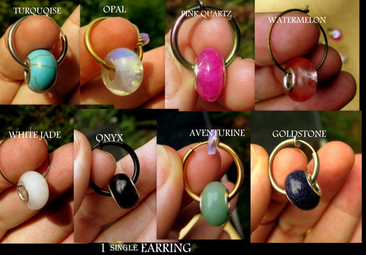 Men Earring donut GEMSTONE, Dangle Hoop/ clip on black, Handmade earring men women gift