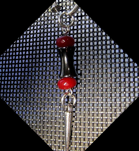 Men Earring RUBY & Hematite hourglass stone, spike, Dangle Hoop/ clip on black, stone Handmade earring men gift