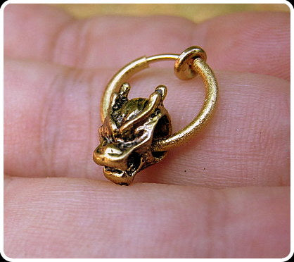 Men gold DRAGON Earring Hoop or Clip on non piercing earring, black chain, Dangle Handmade earring women men gift
