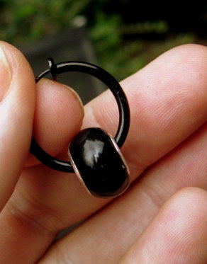 Men Earring ONYX, donut, Dangle Hoop/ clip on black, Handmade earring men women gift