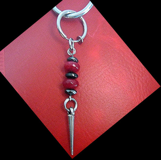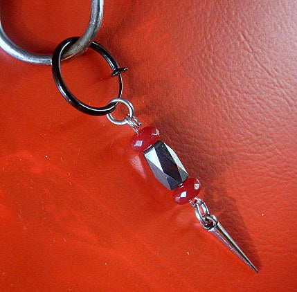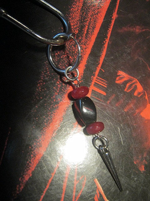 Men Earring RUBY & Hematite heishi stone, spike, Dangle Hoop/ clip on black, stone Handmade earring men gift