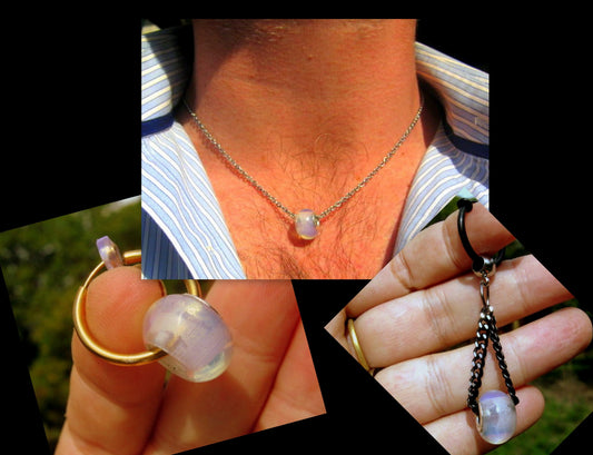 Men Earring OPAL, donut, Dangle Hoop/ clip on black, Handmade earring men women gift