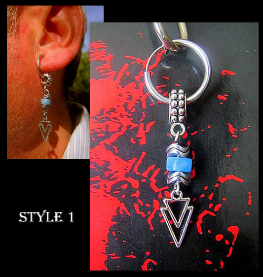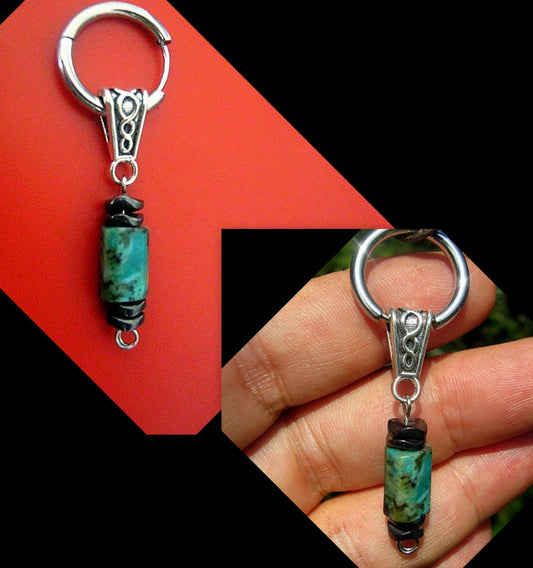 Men Earring African turquoise & Hematite stone silver Spike Dangle Hoop/ clip on stone Handmade earring men gift