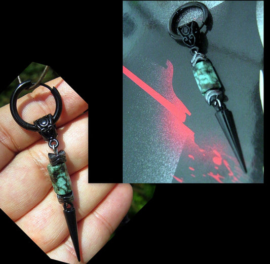 Men Earring African turquoise & Hematite stone black Spike Dangle Hoop/ clip on, Handmade earring men gift