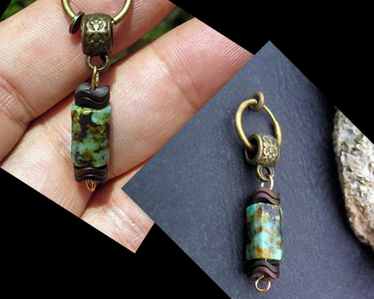Men Earring African turquoise & Hematite stone, Dangle Hoop/ clip on bronze, Handmade earring men gift