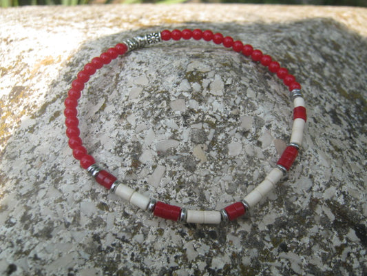 Men slim bracelet White & red Coral, Hematite gemstone, silver unisex Bracelet, handmade slim bracelet men gift