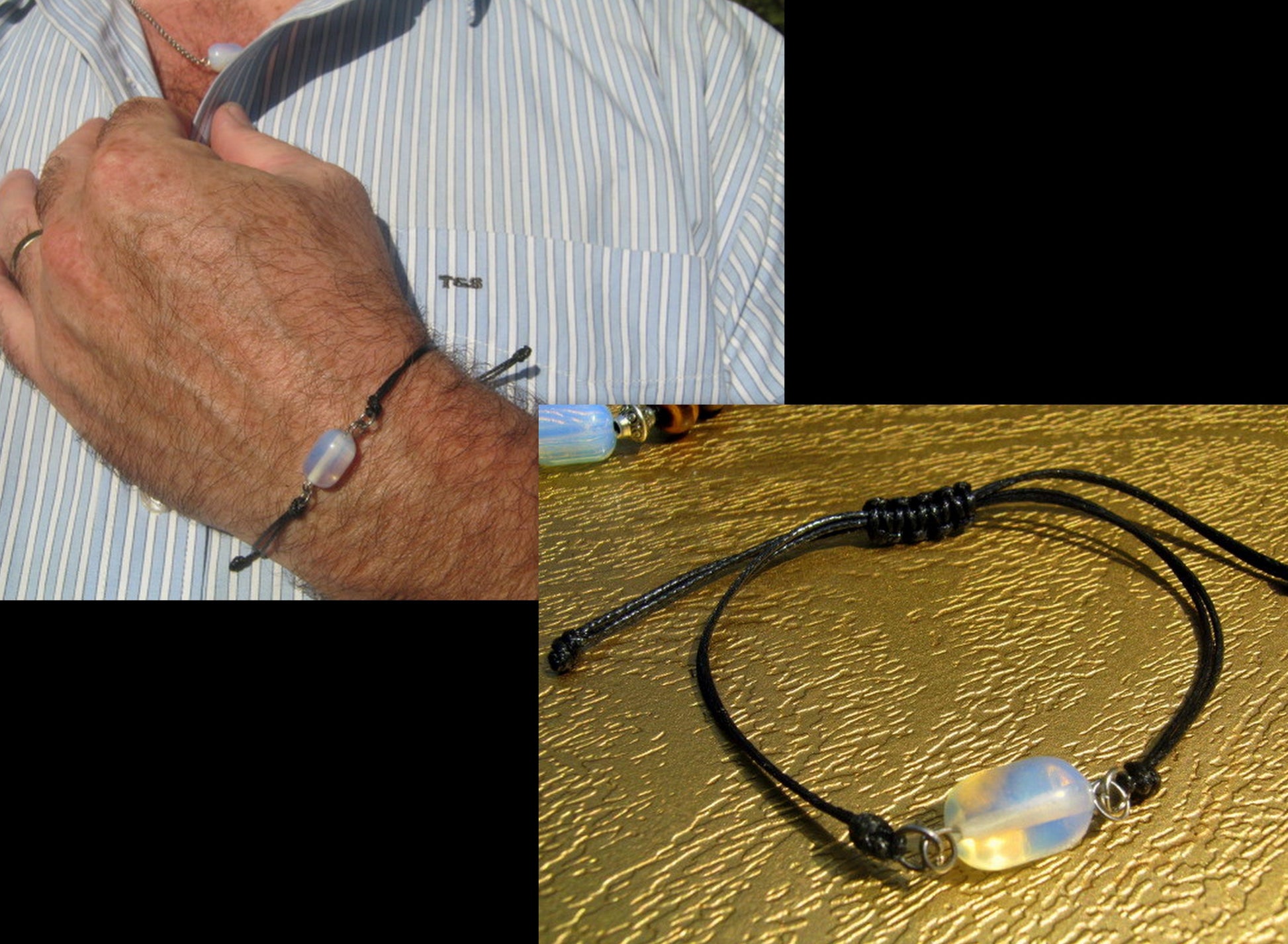 The elegant, sexy and boho men / women Bracelet - made by hand- combine wax cord adjustable / slice knot with beautiful Opal/Opalite stone - magic jewelry that brings good luck, health, prosperity and peace of mind - is a great gift idea or a special treat for yourself. (It can be delivered in a beautiful packaging for gift)