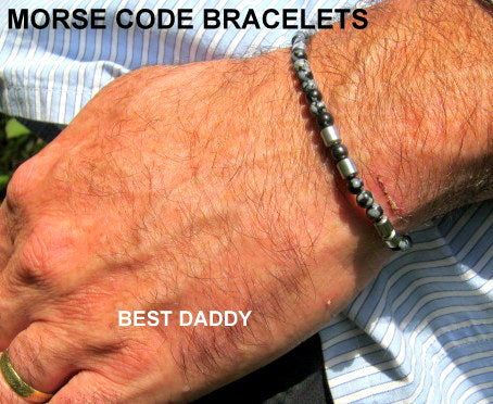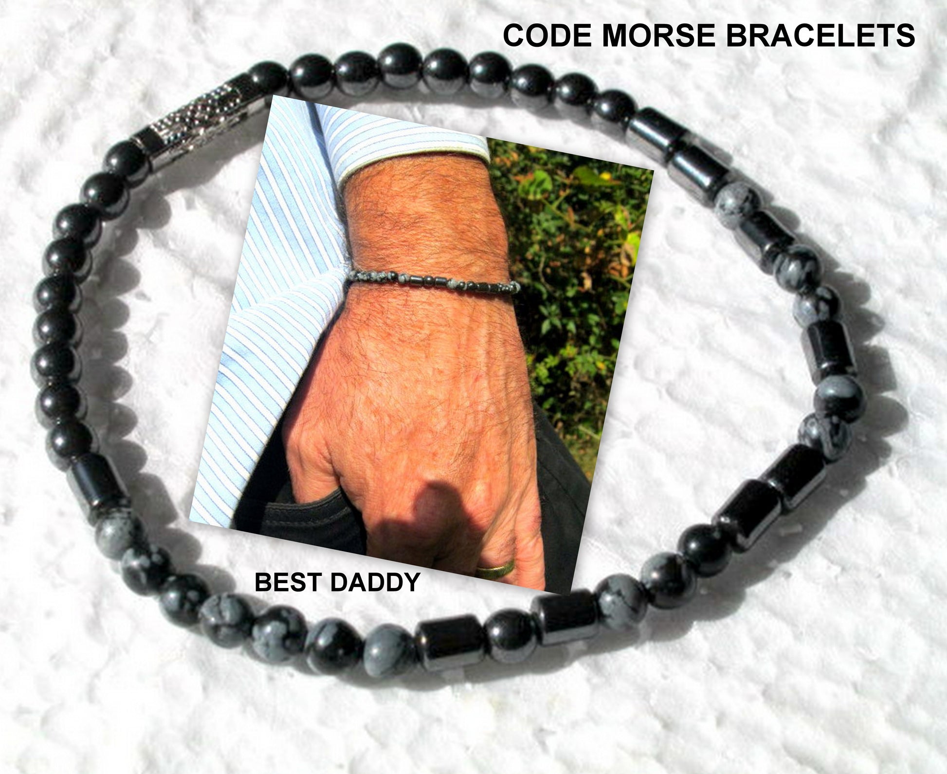 Custom MORSE CODE men/women Hematite Obsidian Bracelet, I love you Secret Message, Healing protection gemstone Men handmade slim bracelet Men gift