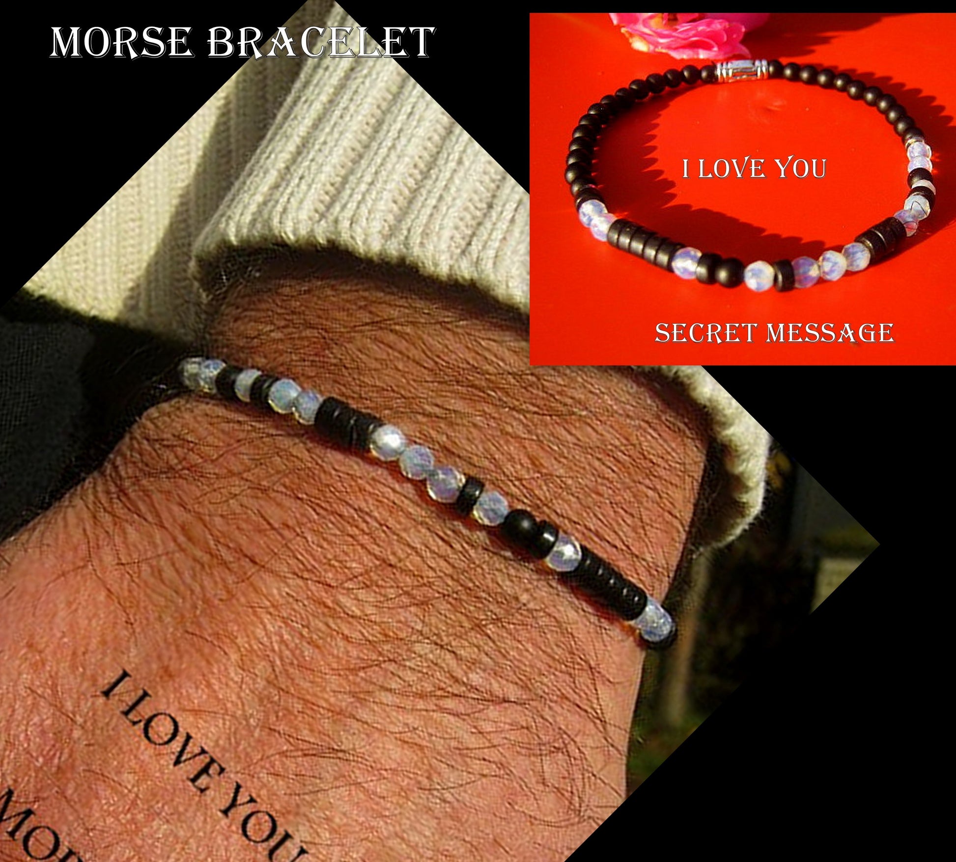 A contemporary bracelet sends a secret message in Morse Code – perfect if you’ve been searching for a unique, personalized gift . You could use it to ask your best friend to be your best man, or to tell your partner you’re expecting a baby, for an anniversary or special birthday gift. is a great gift idea or a special treat for yourself. (delivered in a beautiful packaging ) Made from high quality Opal, Blue Cat eye, silver & black Hematite , gemstone beads/4mm and a stainless steell fancy tube .