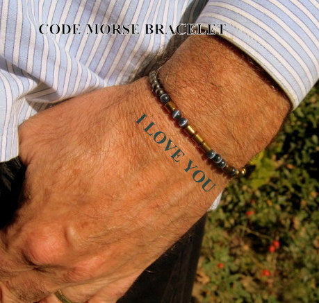 Custom MORSE CODE men/women Hematite Opal Cat Eye stone Bracelet, I love you Secret Message, Healing protection gemstone Men handmade slim bracelet Men gift