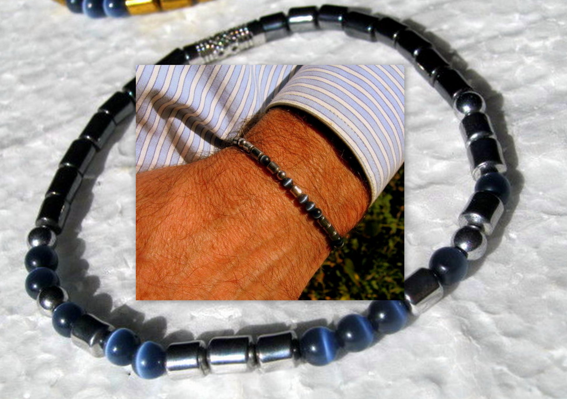Hematite helps to protect against negative energies, shielding the wearer from external negativity and enhancing inner strength and courage. Is excellent for the mind, as it stimulates focus, enhancing concentration and memory recall. It stimulates the brain, improving our mental organization and logical thought - and it even encourages original thinking. It balances the body, stabilizing our equilibrium and helping both ethereal and physical systems remain aligned. The hematite is known as the "blood stone". It is intended to stimulate the formation of blood and hemostatic effect. He is a rejuvenator and gives strength, vitality and vibrancy. This stone will aid in visualization and imagery- can attract what you think. Magnetic therapy is the idea that magnets increase circulation, blood flow, and oxygen in a specific area in the body, stimulate the brain and affects the pineal gland.. Increased blood flow can help to relieve pain and stiffness, especially if your joints, back, or muscles are swollen or injured.