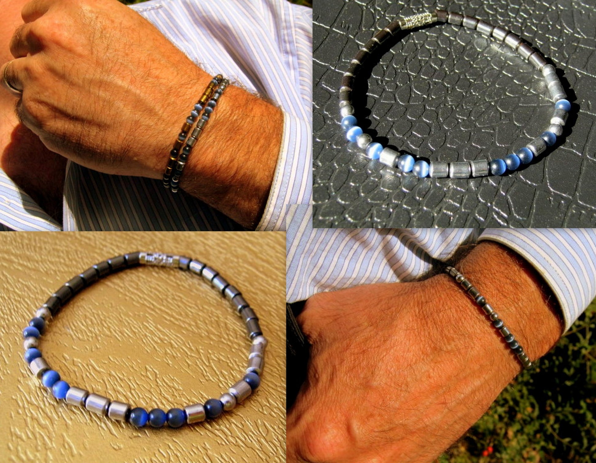 -1 bracelet -Cat Eye & hematite black & silver -Style.3