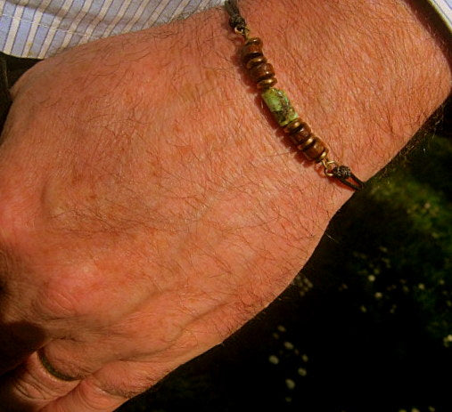 Green African TURQUOISE brown Coco wood Hematite heishi men bracelet Cord slice knot slim set surfer bracelet, protection stone Men/ couple gift,Handmade bracelet