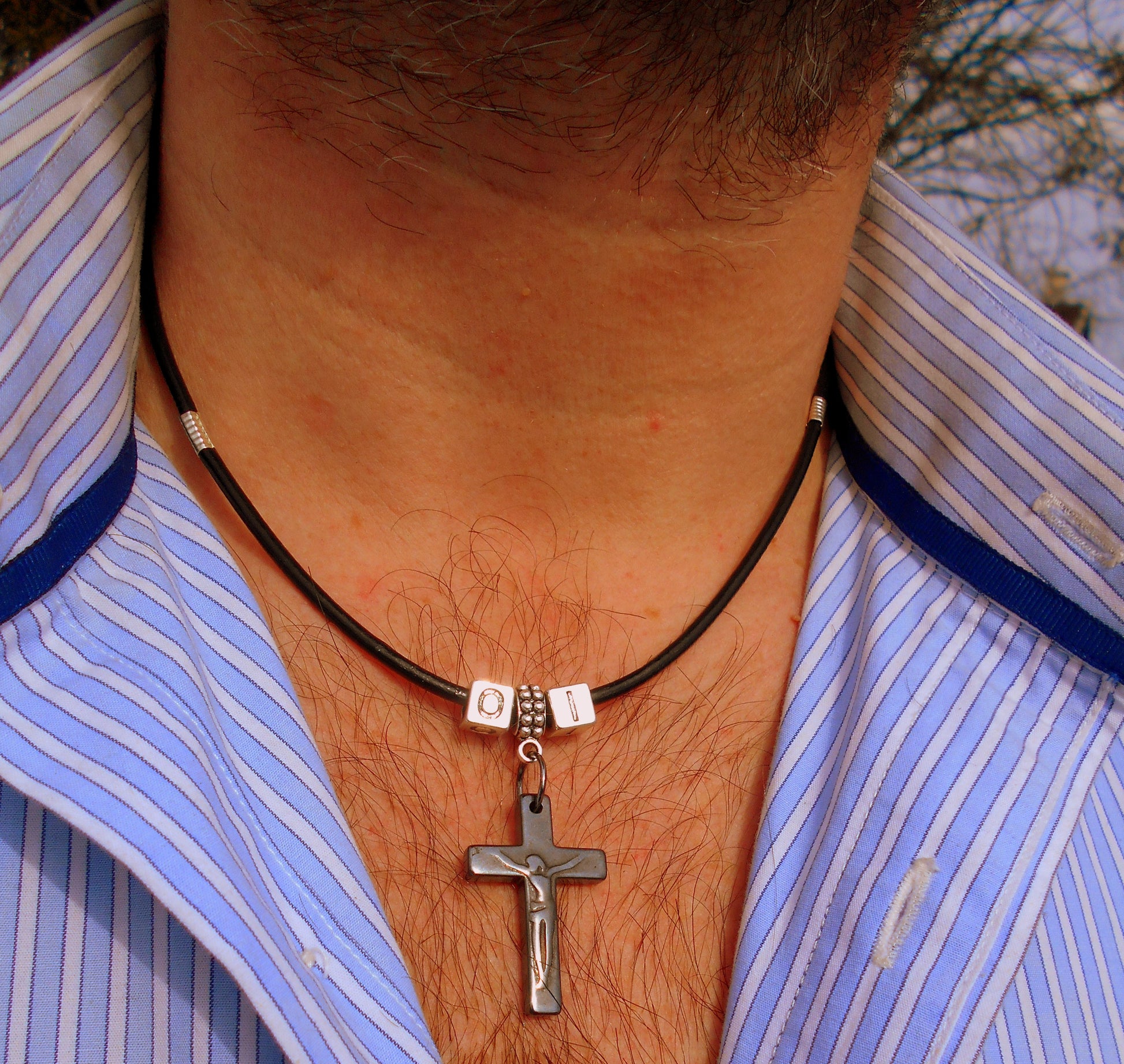 Men Hematite CROSS Pendant custom Necklace Leather. Religious protection CROSS pendant, handmade necklace Men Gift
