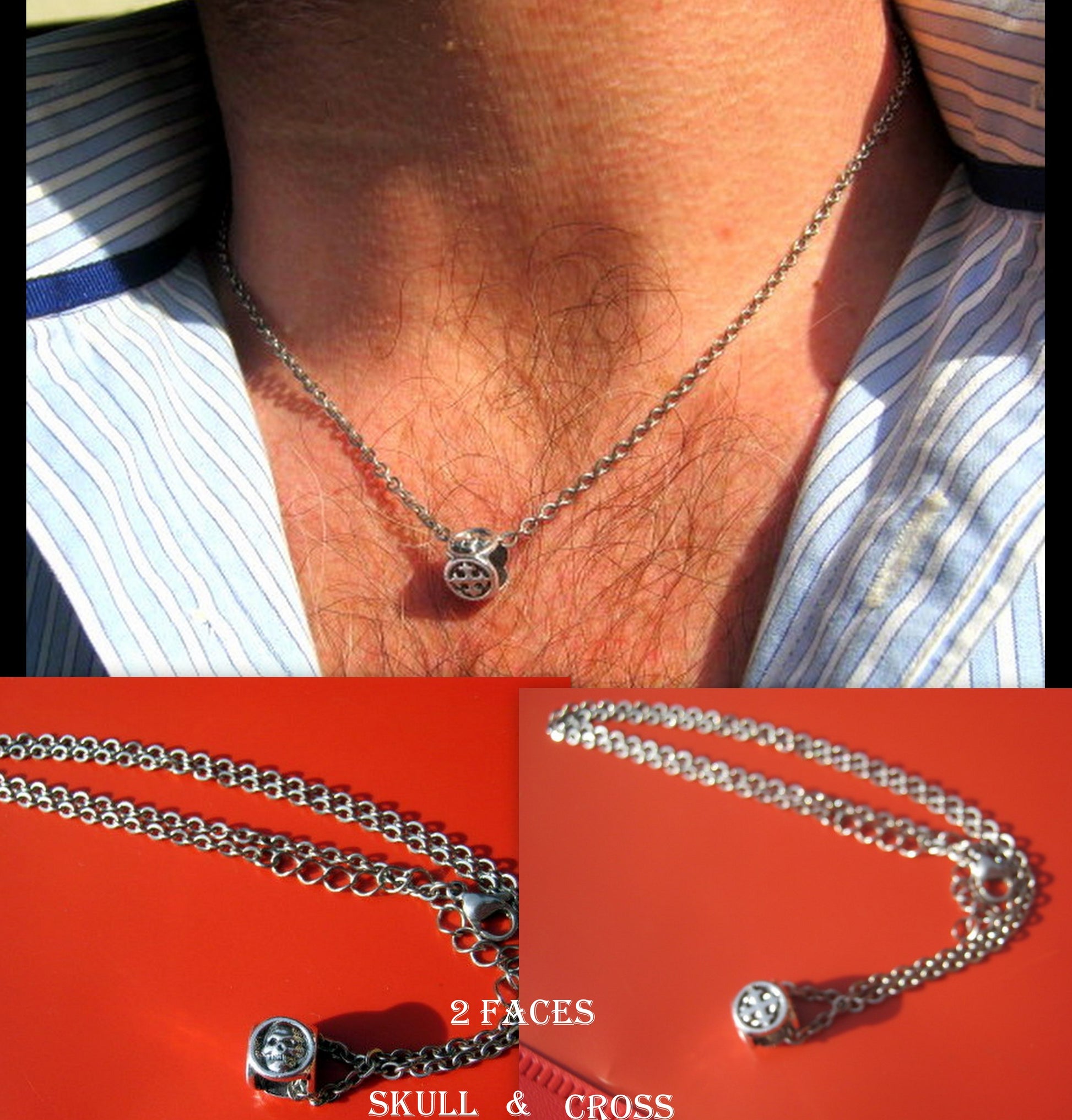 Men CROSS & Skull square pendant protection Necklace, chain stainless steel, Handmade necklace Men Gift