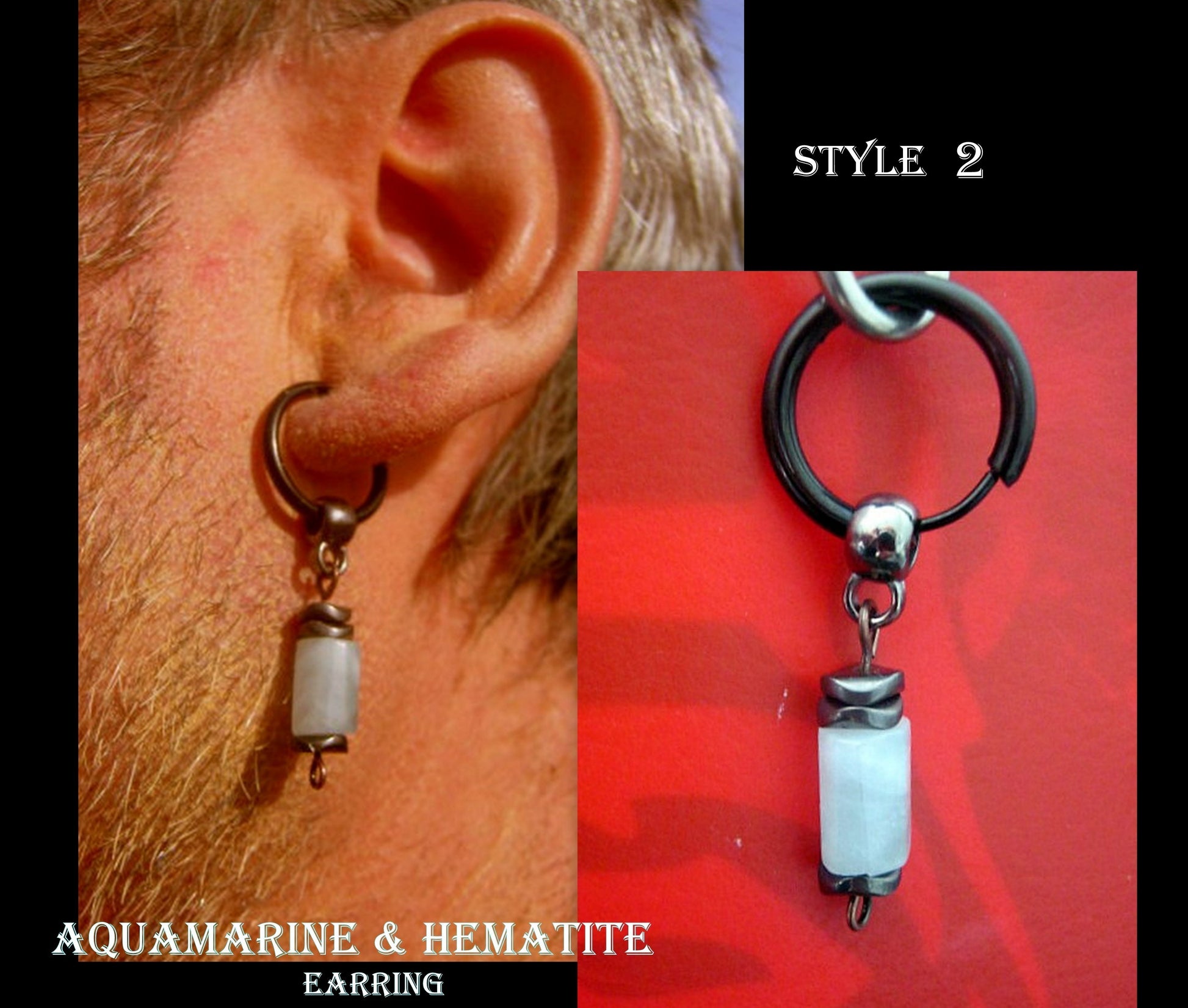 - style 2 - 1 earring AQUAMARINE stone, black Hematite