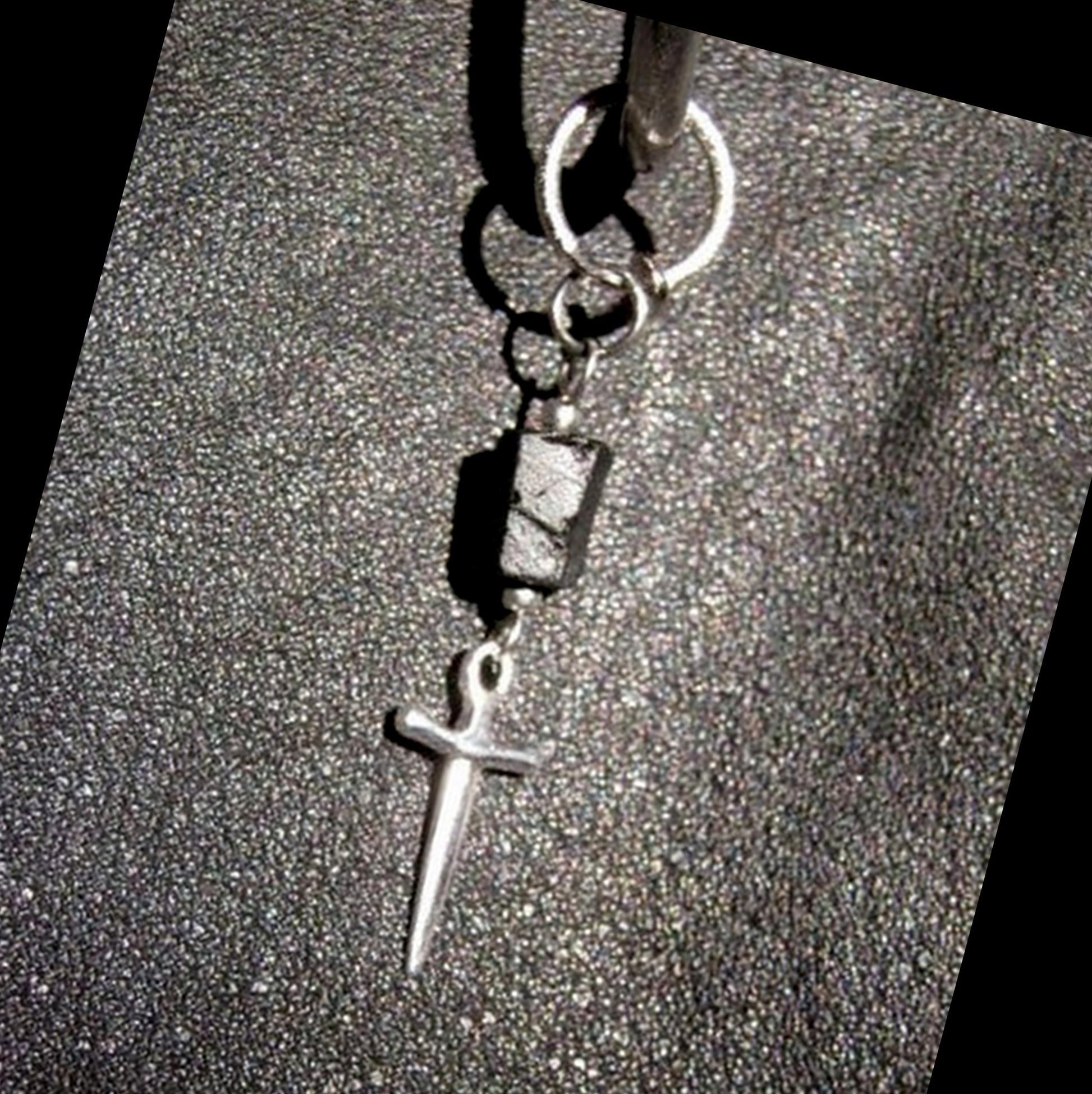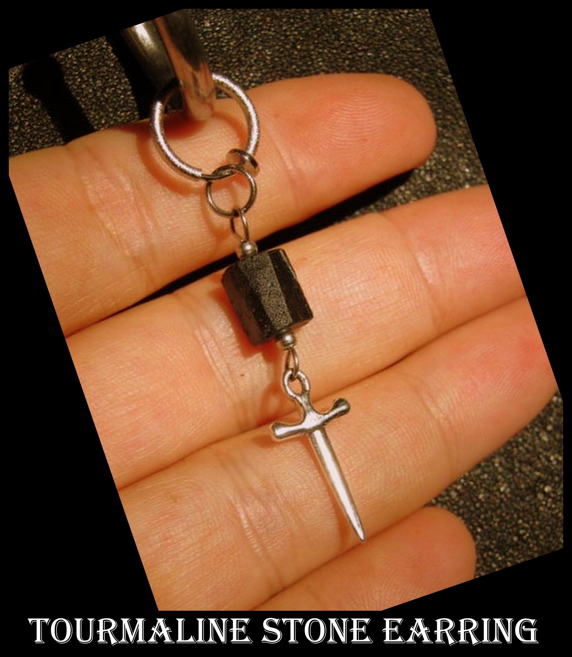 Men Earring raw TOURMALINE stone- Protection, silver Sword, Dangle Hoop/ clip on earring, Handmade earring women men gift