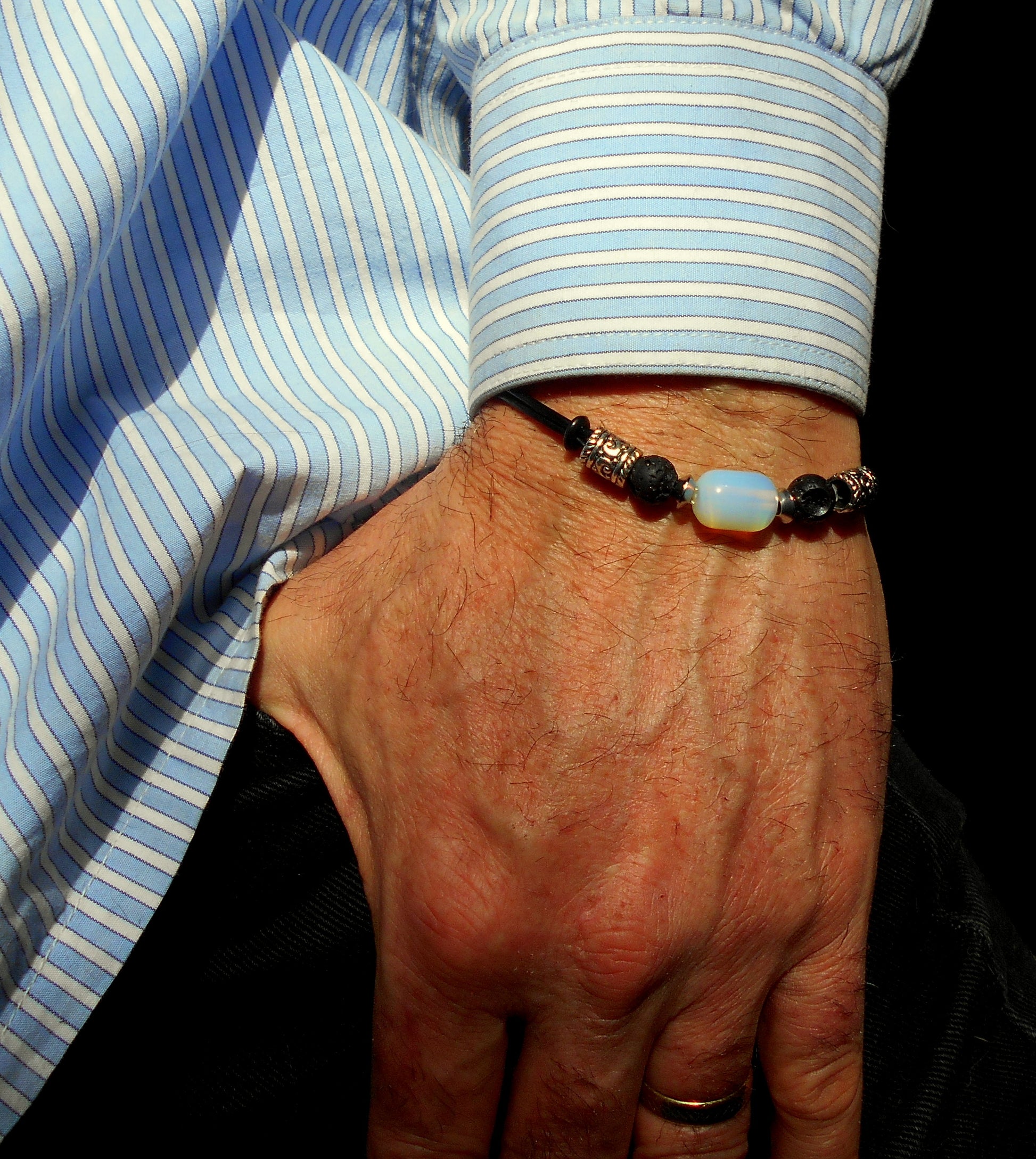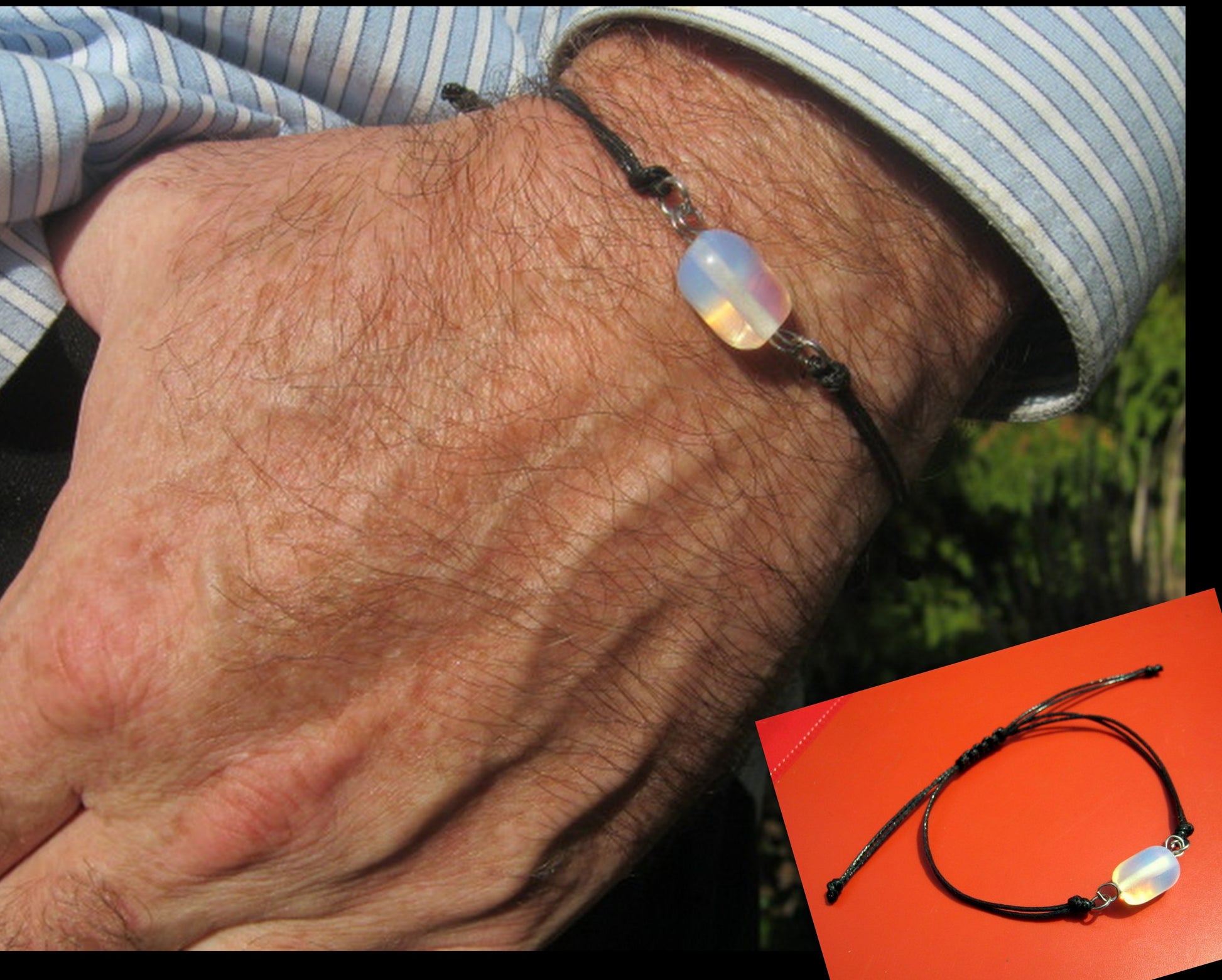The elegant, sexy and boho men / women Bracelet - made by hand- combine wax cord adjustable / slice knot with beautiful Opal/Opalite stone - magic jewelry that brings good luck, health, prosperity and peace of mind - is a great gift idea or a special treat for yourself. (It can be delivered in a beautiful packaging for gift)