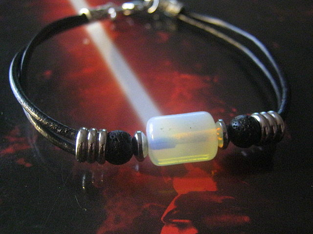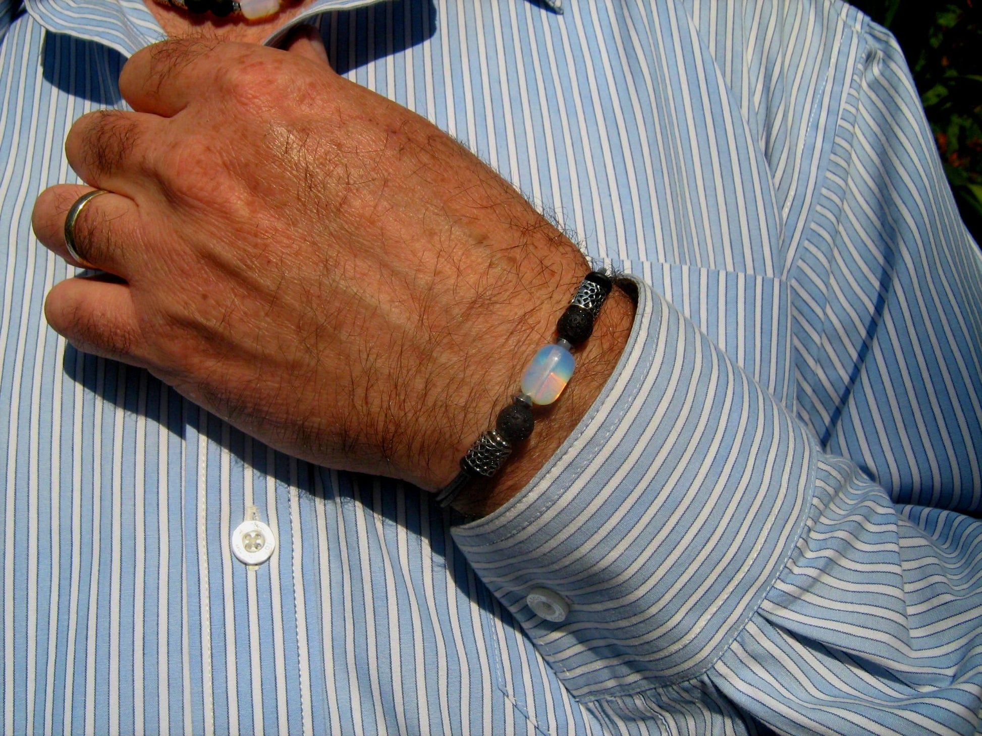 The elegant, sexy and boho men / women Bracelet - made by hand- combine leather with beautiful Opal/Opalite stone, Lava and Hematite heishi- magic jewelry that brings good luck, health, prosperity and peace of mind - is a great gift idea or a special treat for yourself. (It can be delivered in a beautiful packaging for gift)