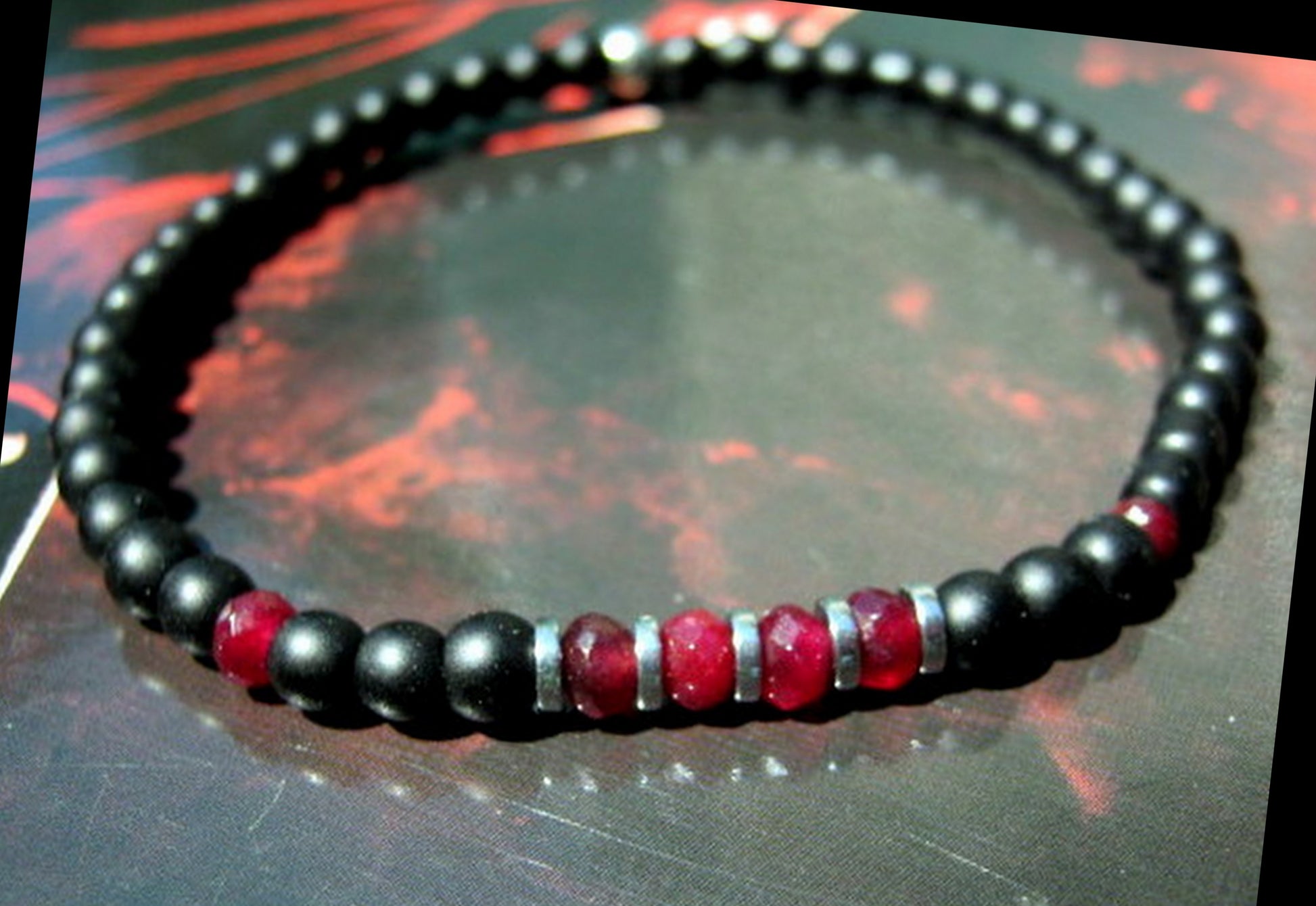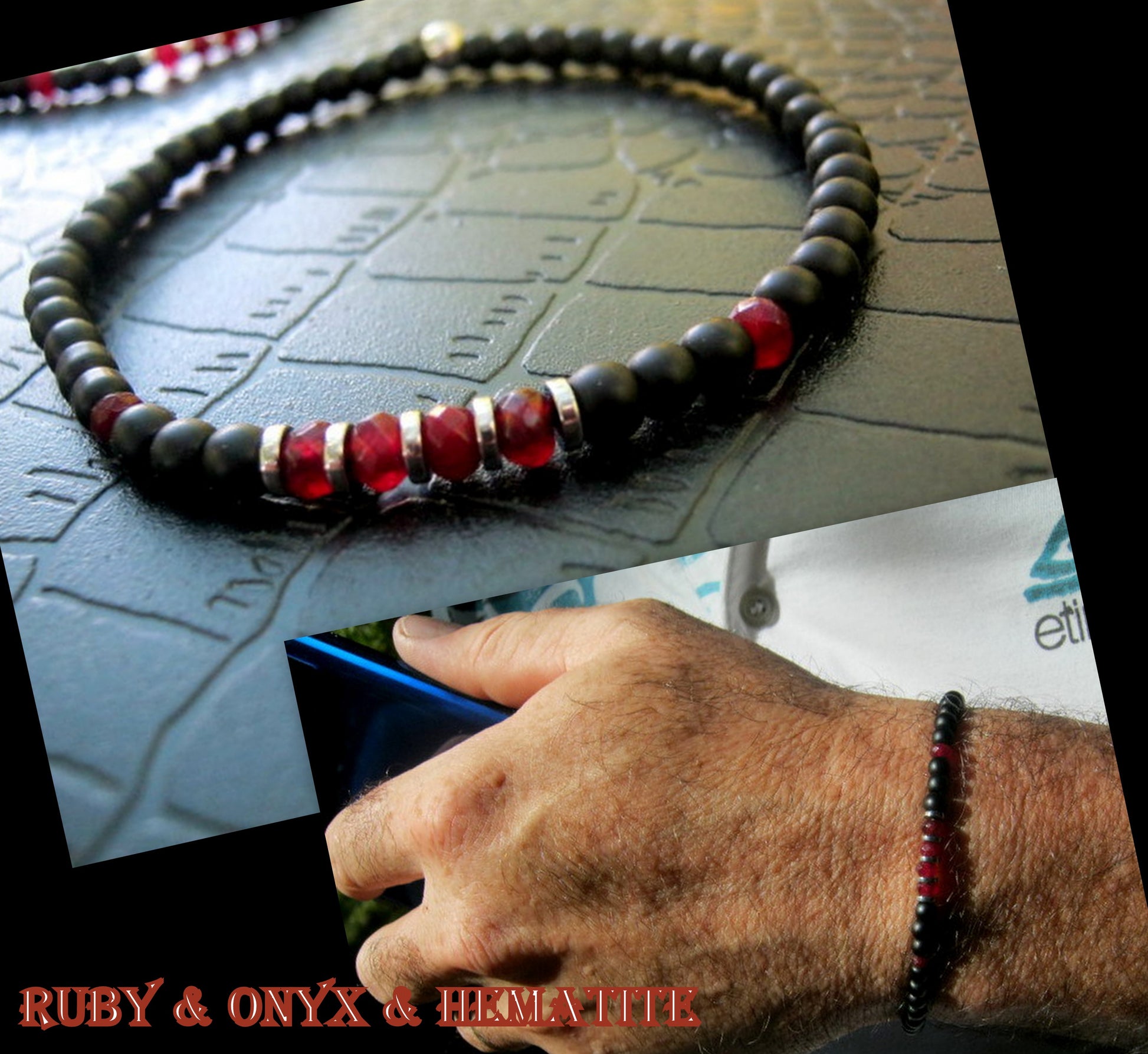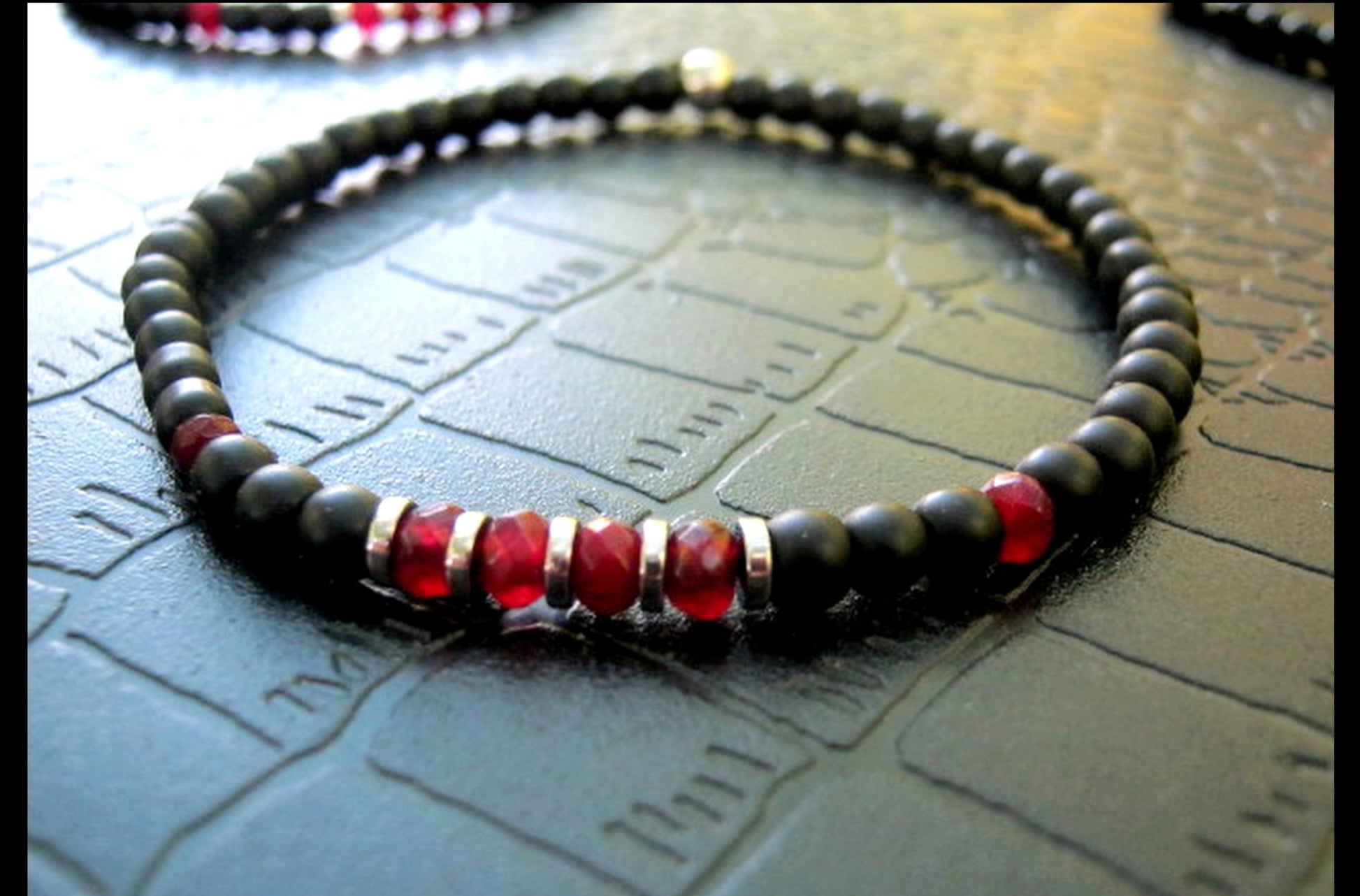 The elegant, sexy and boho men and women minimalist Bracelet - made by hand with tiny faceted precious stones RUBY (4 mm), Onyx mat , silver hematite and sterling silver 925 bead - jewelry that brings good luck, health, prosperity and peace of mind - is a great gift idea or a special treat for yourself. ( delivered in a beautiful packaging for gift)