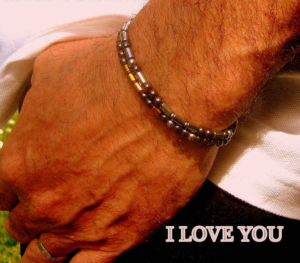 Men SET stack Bracelets I love you Jewelry Bracelet Hematite stone. Gift for couple, Men/women gift handmade slim bracelet