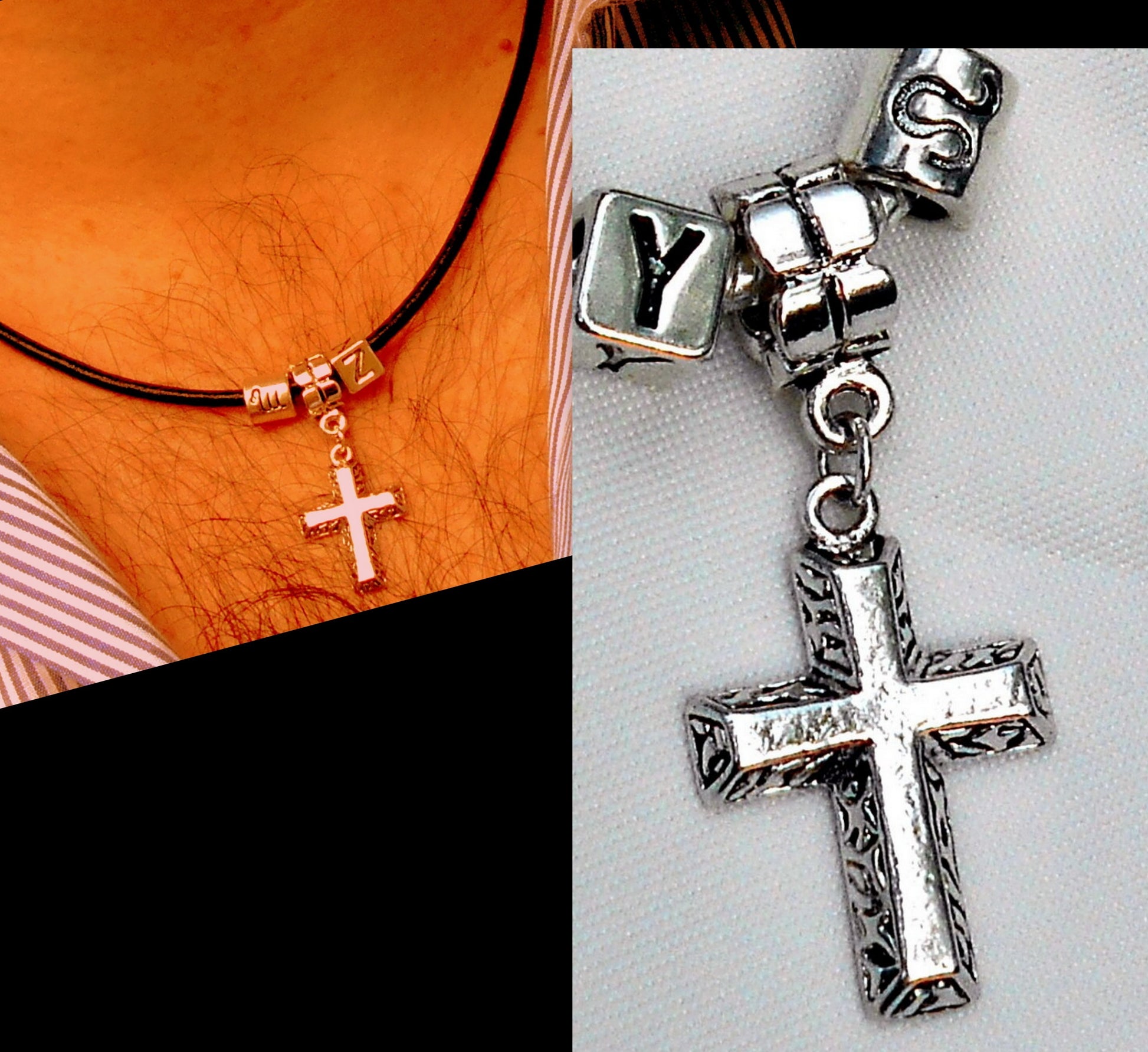 Men tibetan silver CROSS Pendant custom Necklace Leather. Religious protection CROSS pendant, handmade necklace Men Gift