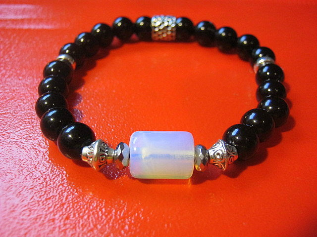Men OPAL stone Bracelet Tourmaline Hematite Moonstone, Handmade bracelet men gift