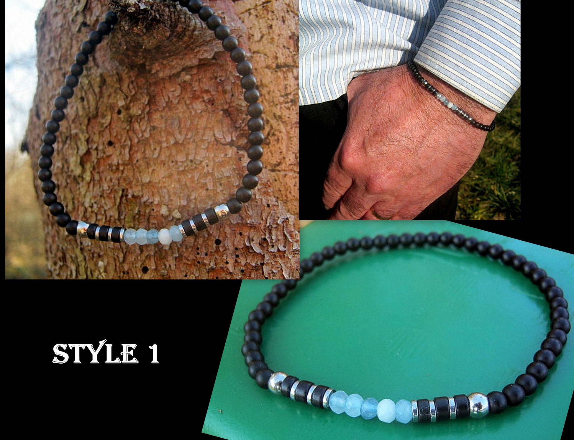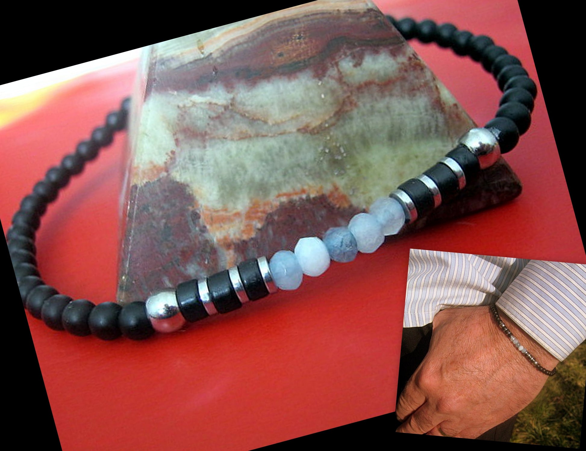 Men tiny AQUAMARINE Angelite Tourmaline Onyx Black Diamond Spinel Hematite bracelet, protection precious stone handmade slim bracelet men gift