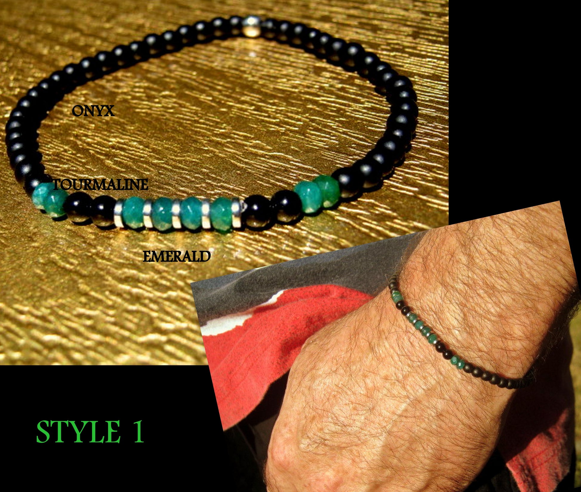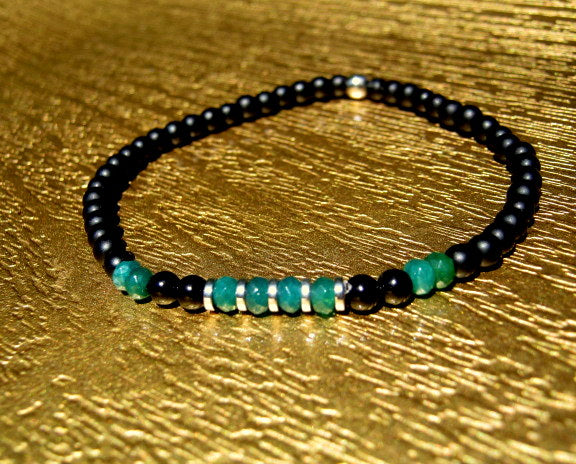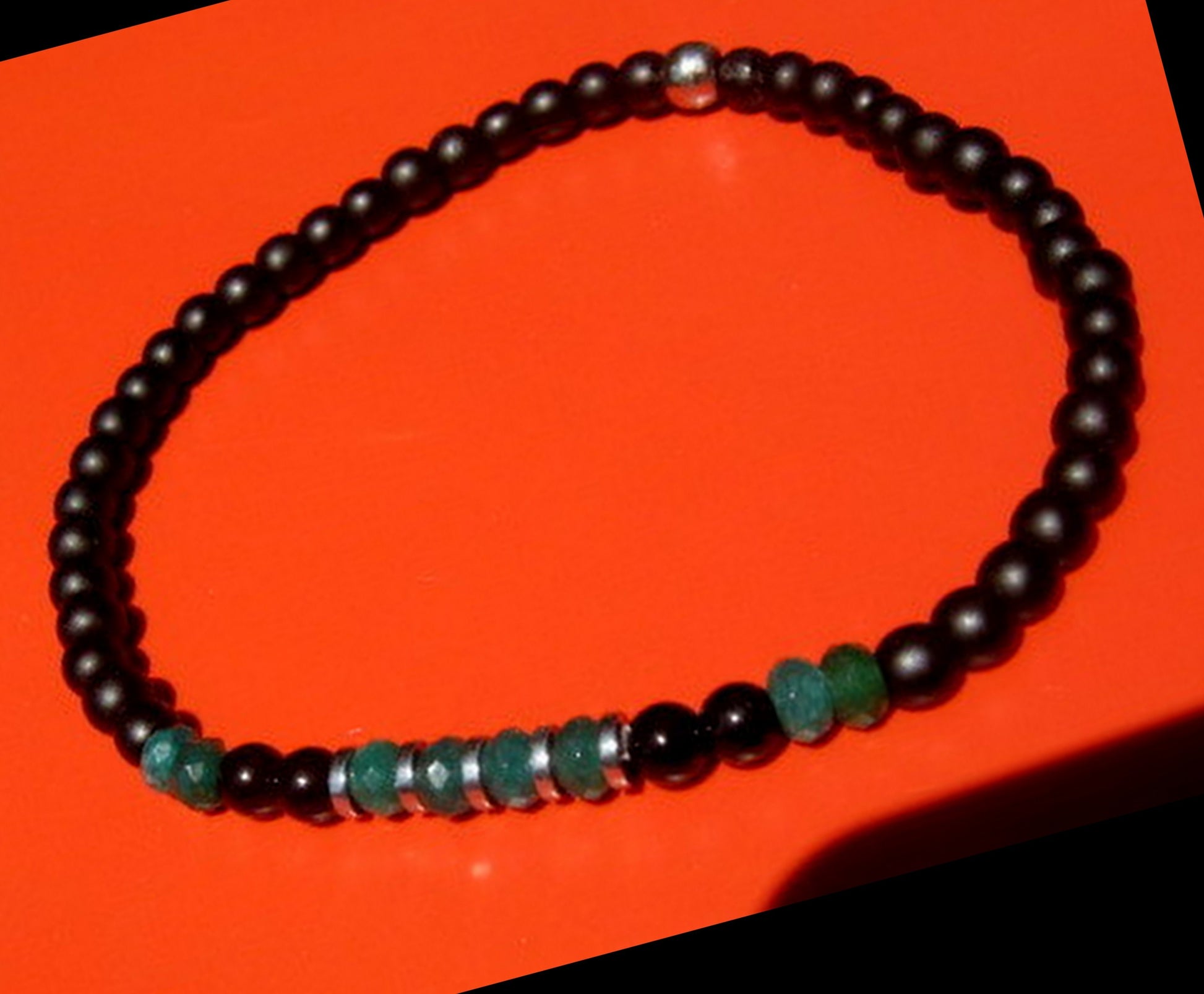 The elegant, sexy and spiritual men / women minimalist Bracelet - made by hand with tiny faceted precious stones (4 mm), EMERALD ,Tourmaline ,Onyx mat , silver hematite and sterling silver 925 bead - jewelry that brings good luck, health, prosperity and peace of mind - is a great gift idea or a special treat for yourself. ( delivered in a beautiful packaging for gift)