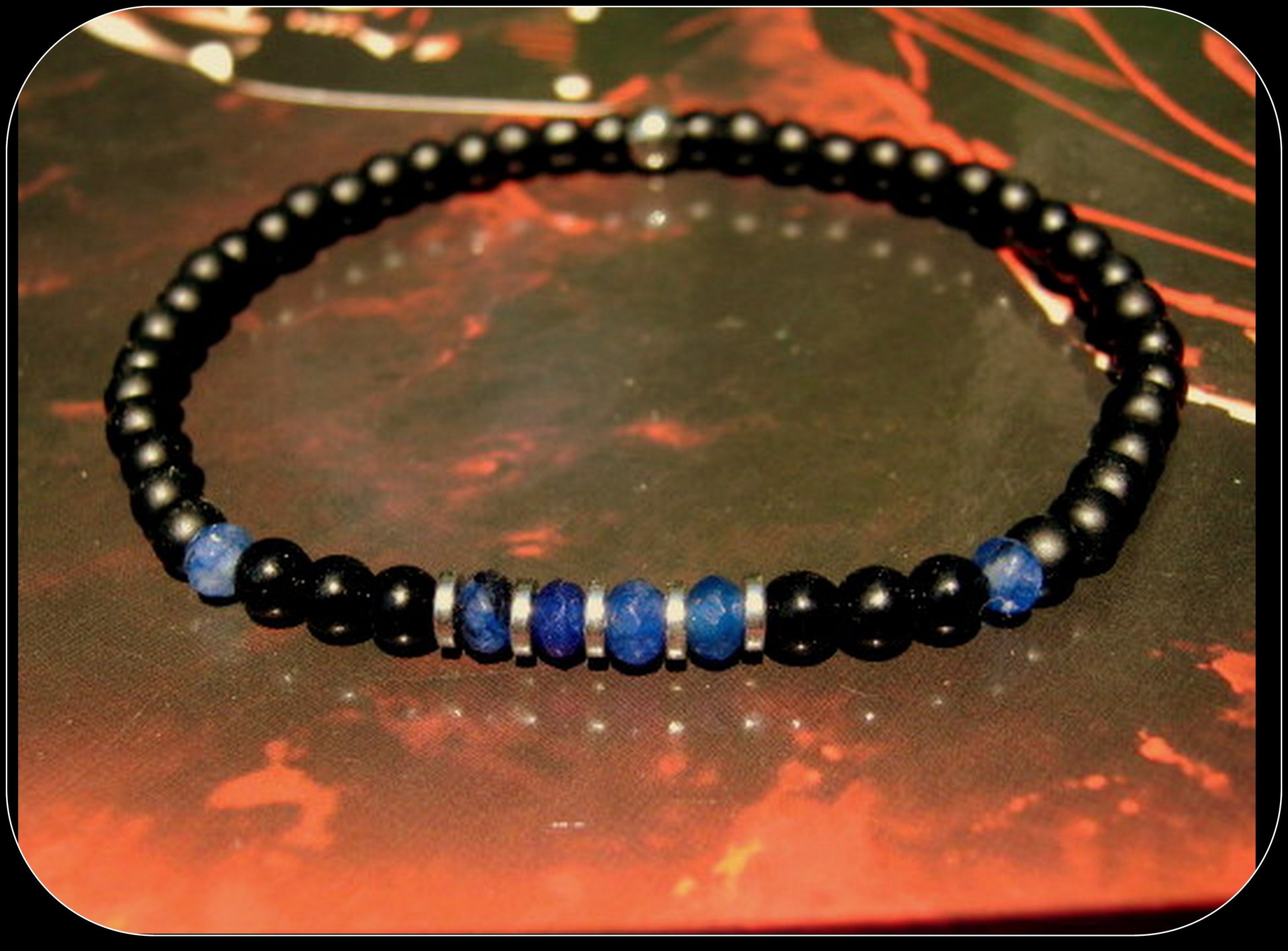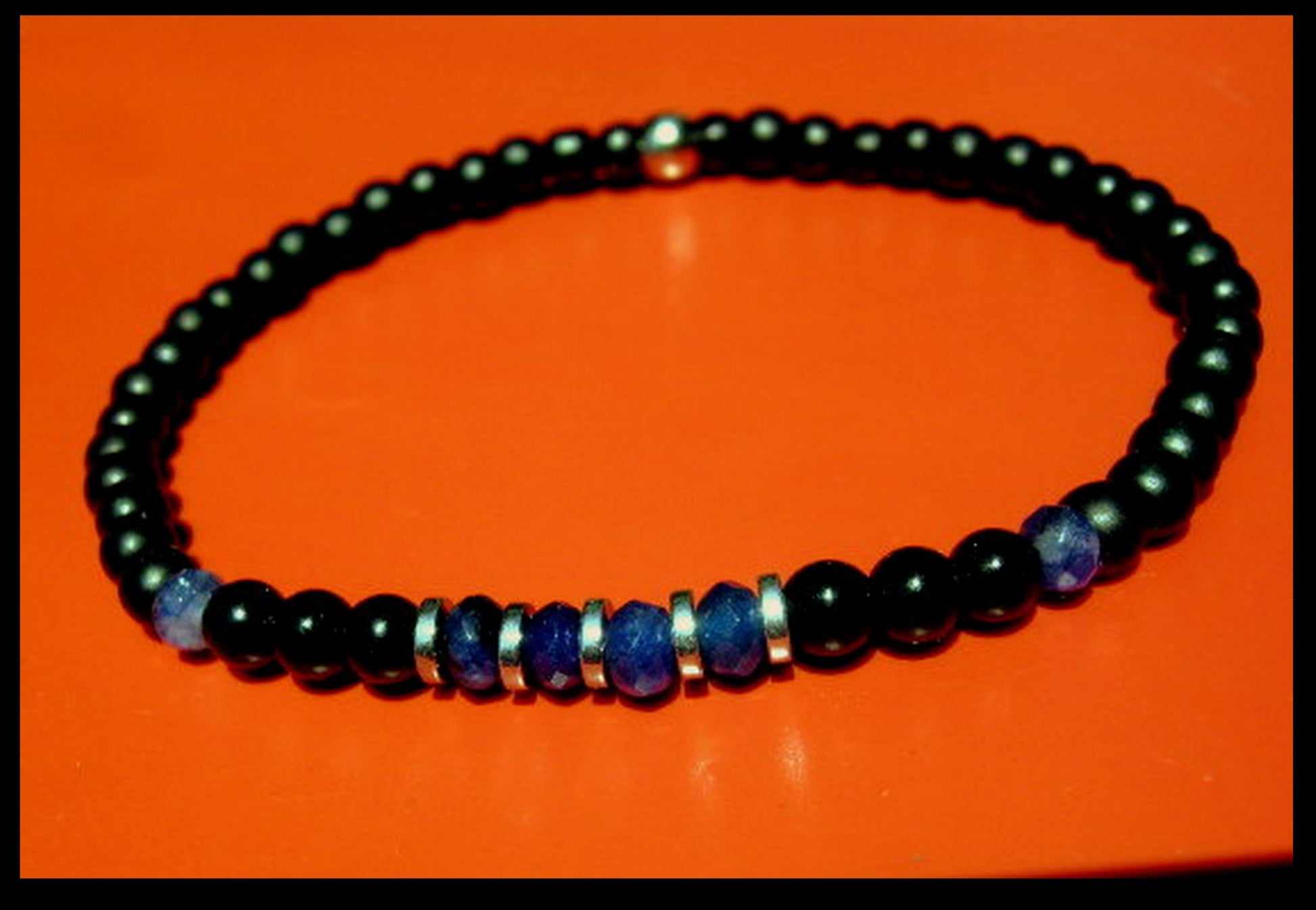 The elegant, sexy and spiritual men & women minimalist Bracelet - made by hand with tiny faceted precious stones (4 mm), tiny blue SAPPHIRE, Onyx, silver hematite and sterling silver 925 bead - jewelry that brings good luck, health, prosperity and peace of mind - is a great gift idea or a special treat for yourself. ( delivered in a beautiful packaging for gift)