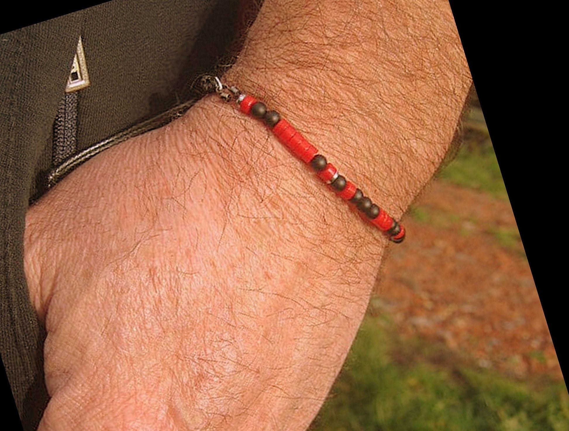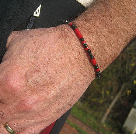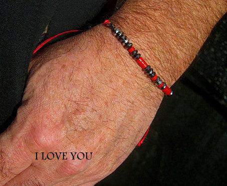Men/women Bracelet, Hematite, Coco wood, Onyx & RED CORAL, CORD, Healing protection stone Men handmade slim bracelet Men gift