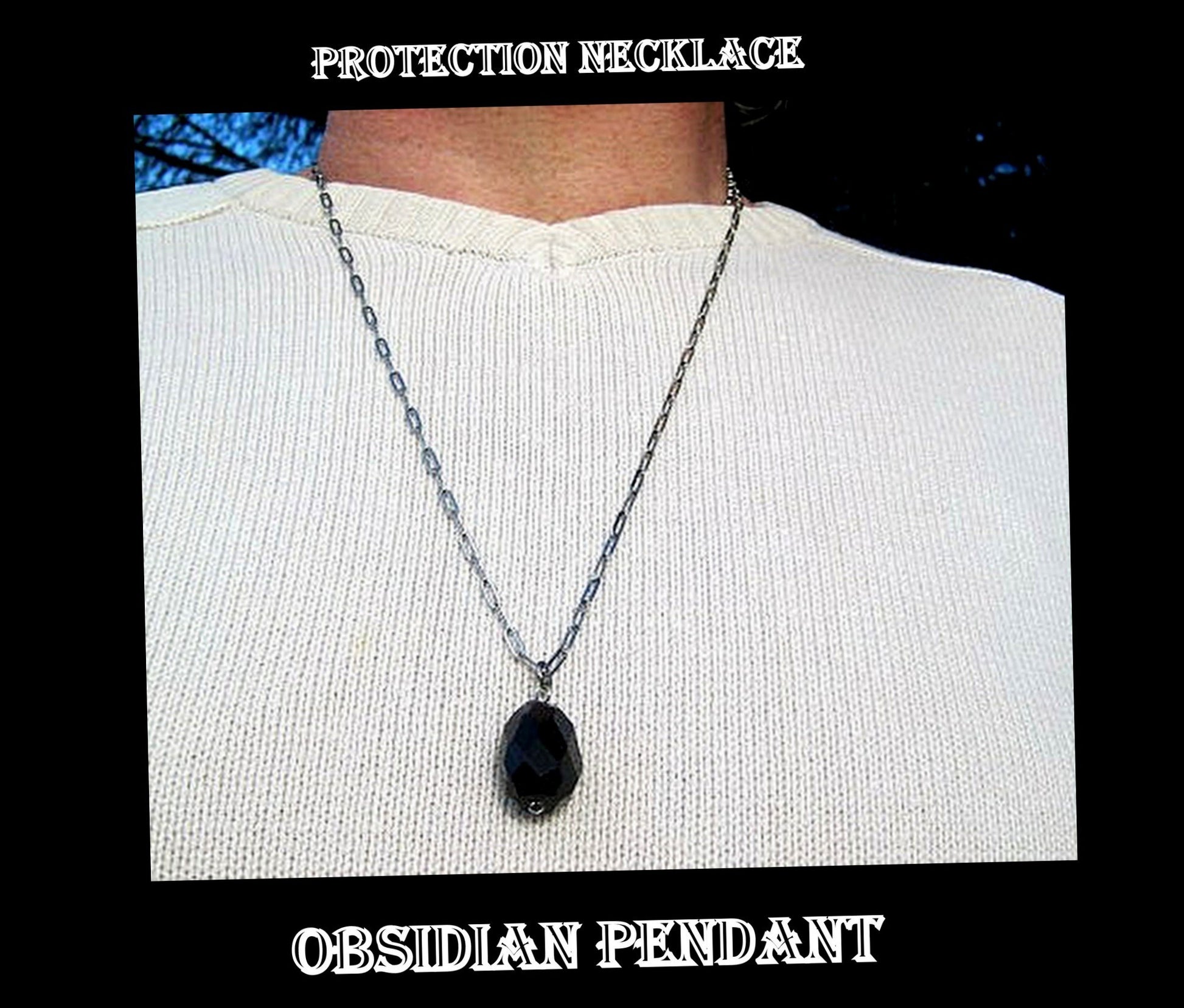The elegant magic and protection NECKLACE is made by hand, combine with elegance stainless steel chain or cord or leather with natural OBSIDIAN stone 25-15 mm - jewelry that brings good luck, health, prosperity and peace of mind - is a great gift idea, or a special treat for yourself. (It is delivered in a beautiful packaging for gift).